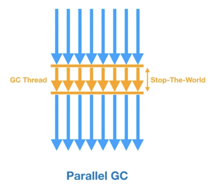 Parallel GC는 여러 개의 스레드로 GC를 실행하는 방식이다. Java 8에서 기본으로 쓰이는 GC 방식이다.