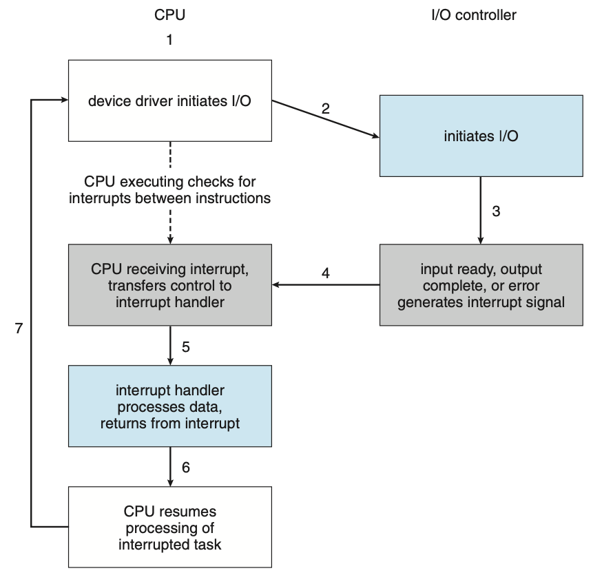 인터럽트-구동 IO 사이클은 아래와 같은 단계를 거칩니다.