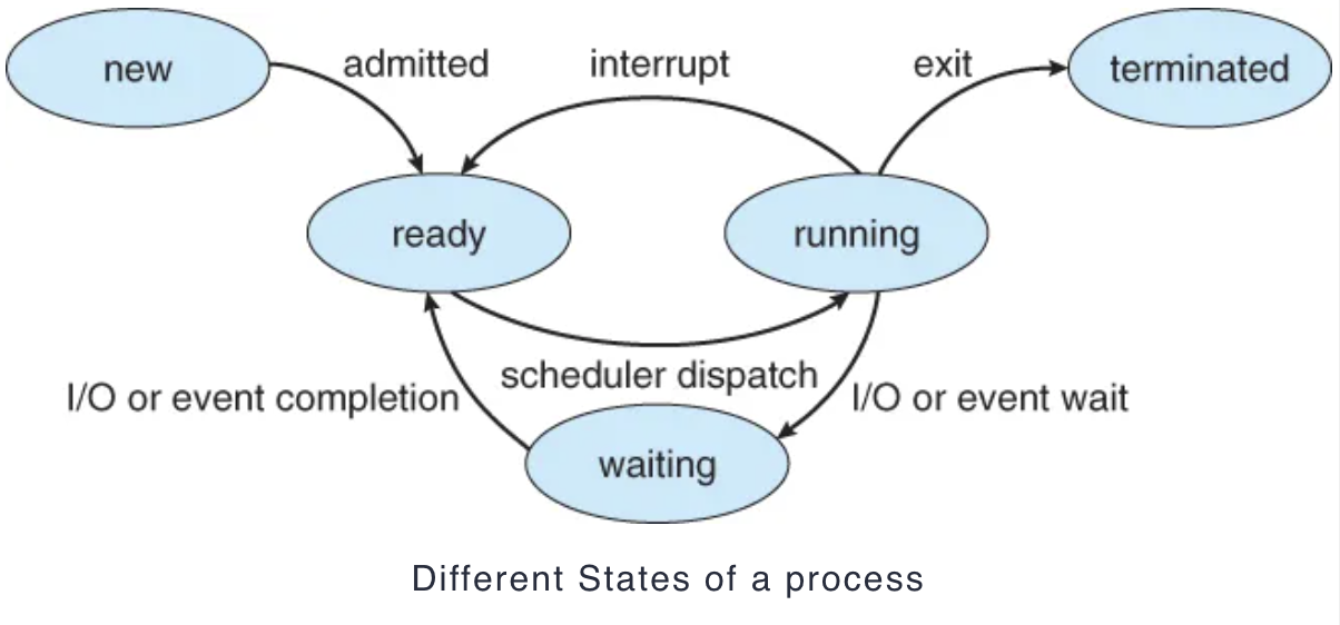 Process 자신이 요청한 event(ex: I/O 작업)가 즉시 만족되지 않아 이를 기다리는 상태 - New : 프로세스가 생성 중인 상태