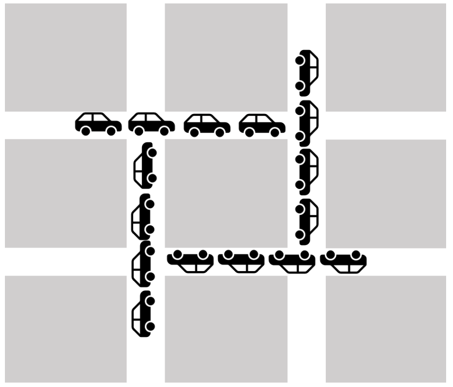 데드락이란 일련의 프로세스들이 서로가 가진 자원을 기다리면서 잠들어있는 상태를 말합니다. 위의 그림에서 자동차는 프로세스, 도로는 자원으로 생각하면 이해가 쉬운데요. 자동차(프로세스)들이 각각의 도로(자원)를 점유한 상태에서 다른 자동차(프로세스)들이 사용하고 있는 도로(자원)를 사용하기 위해 대기하고 있지만, 진행이 더 이상 되질 않는 상태를 말합니다.