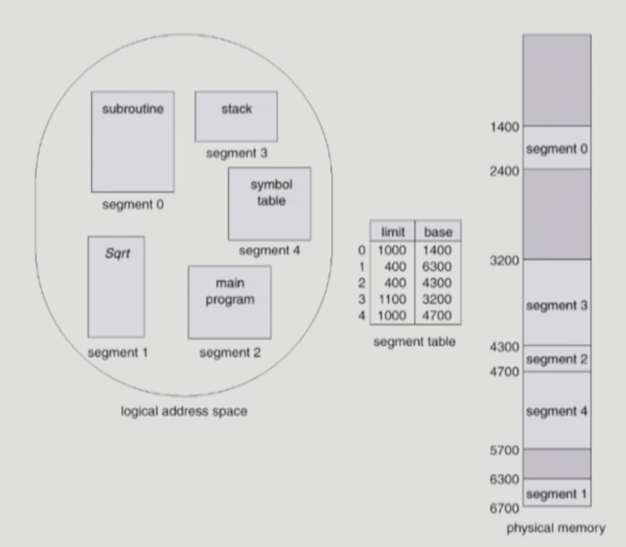 우선, 물리적인 시작 위치 Base 외에 Limit이라는 세그먼트 길이를 가집니다. Paging 기법에서는 나눈 크기가 동일했지만, Segmentation 기법에서는 의미 단위로 나뉘어 있기 때문에 Table마다 길이가 다를 수 있기 때문입니다.