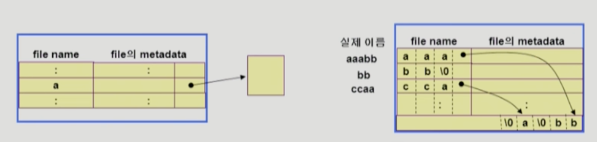 대부분의 메타데이터는 entry의 크기가 고정되어 있기 때문에 파일의 이름이 너무 긴 경우를 다룰 때에는 조금 다른 방식을 사용해야 합니다.