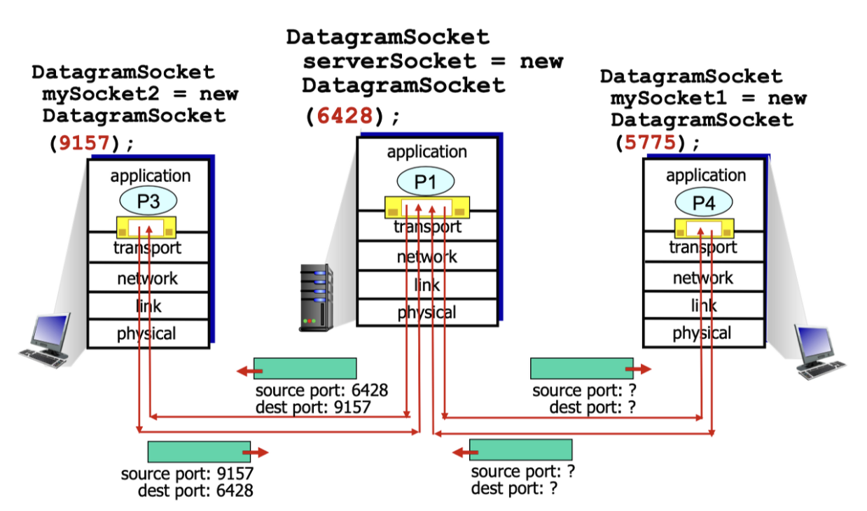 네트워크의 전송 계층의 기능 중에 다중화(Multiplexing)와 역다중화(Demultiplexing)가 있습니다. 이것은 프로세스에서 메시지를 보낼 때 알맞은 프로세스를 찾아 그 프로세스에 보내는 방식입니다.