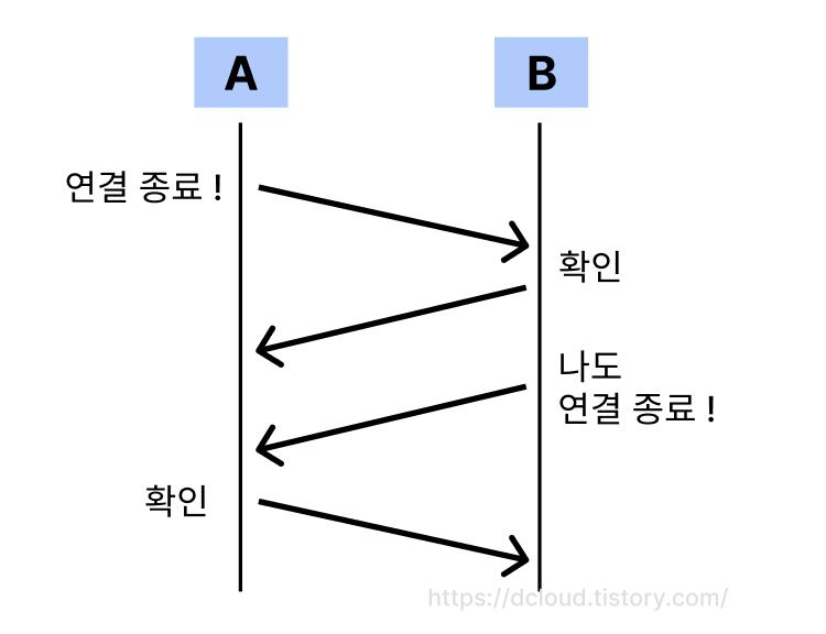 여기서의 연결 종료 요청은 FIN, 그리고 확인은 ACK로 이루어집니다.