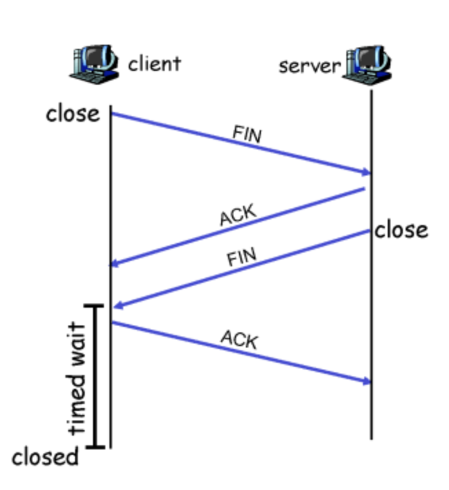 추가로 TCP의 연결 종료 과정이 연결 설정 때보다 한 단계 더 필요한 이유는 TCP가 전이중(Full-Duplex), 점대점(Point-to-Point) 통신을 제공하기 때문입니다. 즉, 각 방향의 데이터 전송이 독립적으로 종료될 수 있게 하기 위해서입니다.