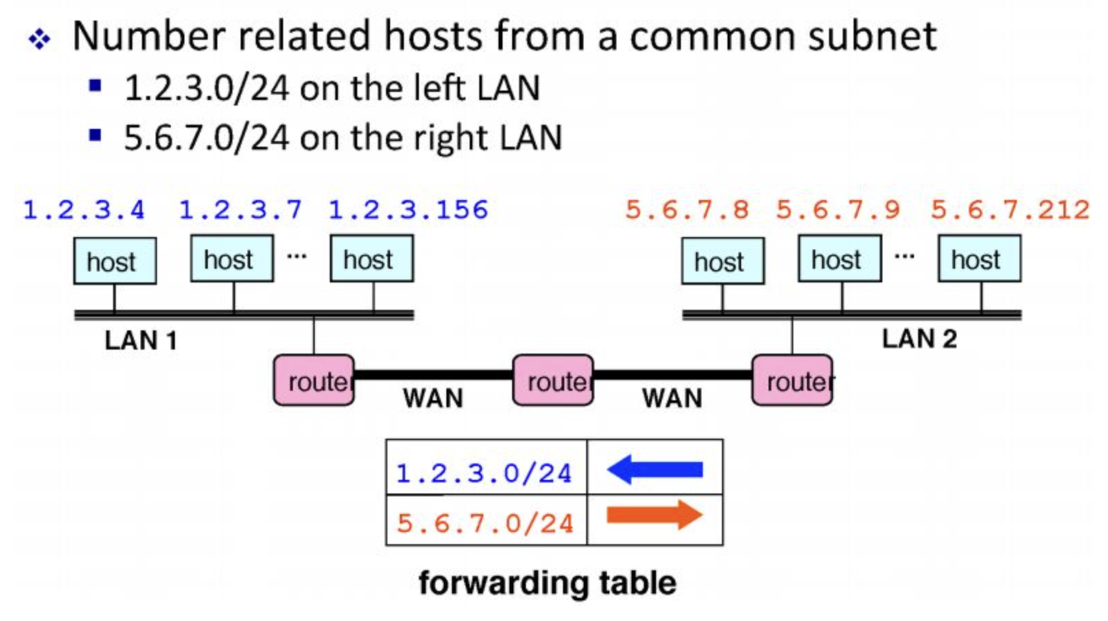 이와 같은 방식은 계층별로 보내는 방향을 설정하면 되기 때문에, router의 forwarding table이 단순해질 뿐 아니라 새로운 host를 추가할 때도 해당 네트워크에서 마음대로 host id를 지정해도 상관 없게 해주는 강점이 있습니다.