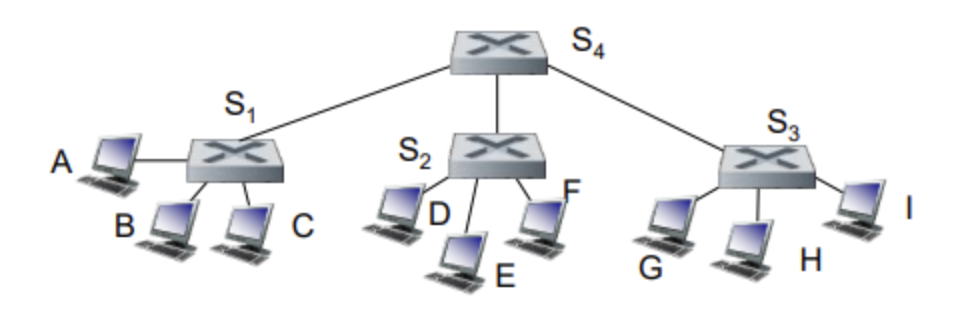 만약 A에서 G로 데이터를 보낸다고 가정해보면, 스위치 S1 > S4 > S3를 거쳐야 합니다. 그럼 S1, S4, S3 스위치들은 어디로 보내야 할지 각자 self learning을 합니다.