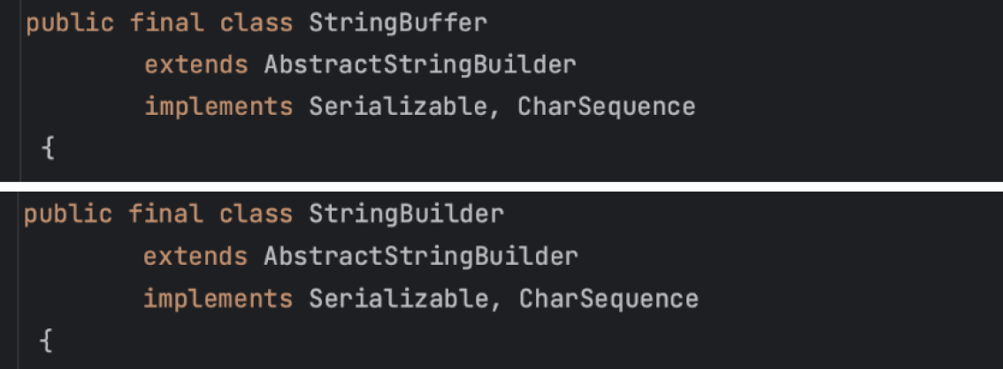자바 코드를 열어보면 StringBuffer 와 StringBuilder는 모두 AbstractStringBuilder를 extends하는 것을 알 수 있다.