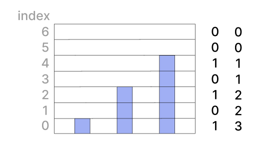 그리고 두 배열을 합쳐, 높이별 장애물 개수를 구할 수 있습니다.