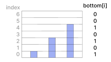 이 때, 주어지는 입력 값인 장애물의 크기는 bottom[], up[] 배열의 인덱스로 입력받아, 해당하는 인덱스 배열의 값을 +1 해줍니다.