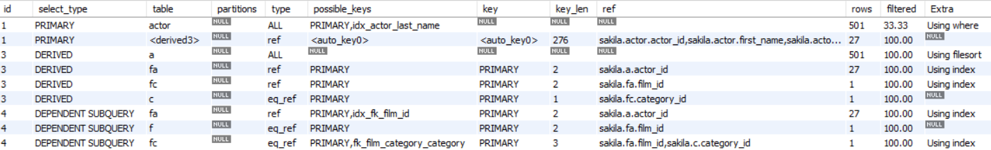 만약 실행 계획을 확인하고 싶다면, 쿼리문 앞에 explain을 붙여서 실행하면 된다.