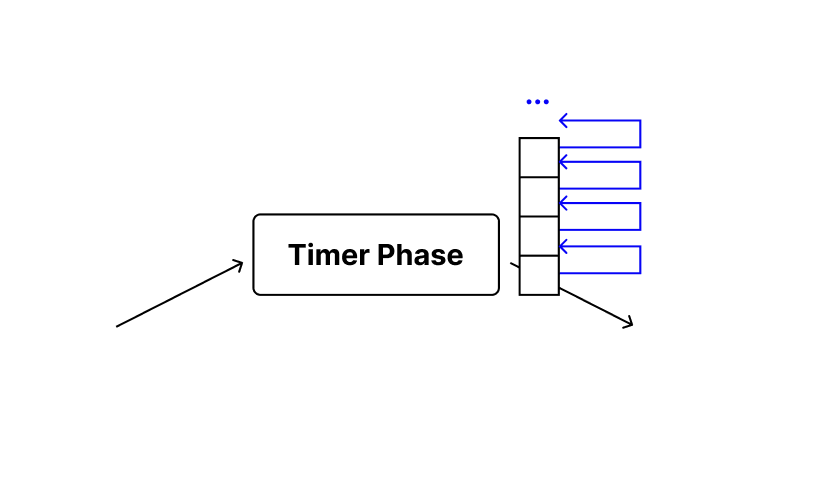 예를 들어, Timer Phase에는 setTimeout과 setInterval의 콜백이, Check Phase에는 setImmediate의 콜백이 각각의 큐에 들어가고, 이벤트 루프는 이를 하나씩 꺼내어 실행한다.