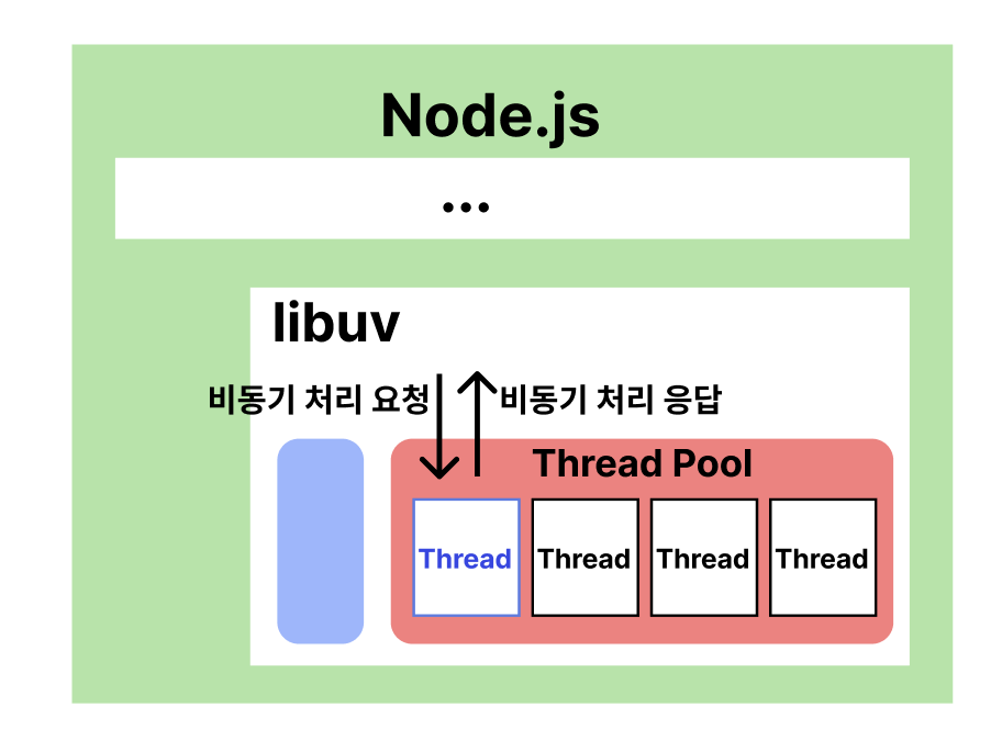 그래서 libuv는 운영체제의 비동기 API를 활용해 논블로킹 작업을 처리하거나, 커널이 이를 지원하지 않는 경우 자체적으로 스레드 풀을 활용해 작업을 처리한다.