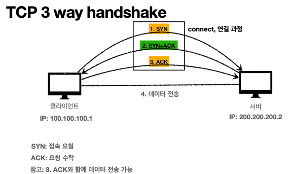 TCP 3 way handshake의 과정은 아래와 같습니다.
