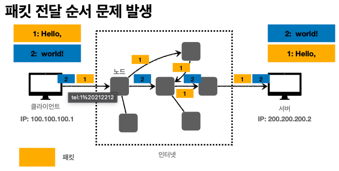 전송된 데이터의 순서가 유지되도록 보장하는 것입니다. 데이터를 보낸 순서대로 서버에 도착하고, 중간에 순서가 잘못되면 서버가 다시 클라이언트에게 요청합니다.