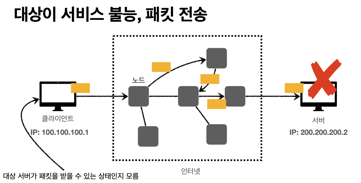 그리고 비신뢰성의 문제가 있습니다. 만약 중간에 케이블이 끊겨 전달 도중에 패킷이 사라지더라도 알 수 없고, 패킷이 목적지에 순서대로 도착하지 않을 수 있습니다.