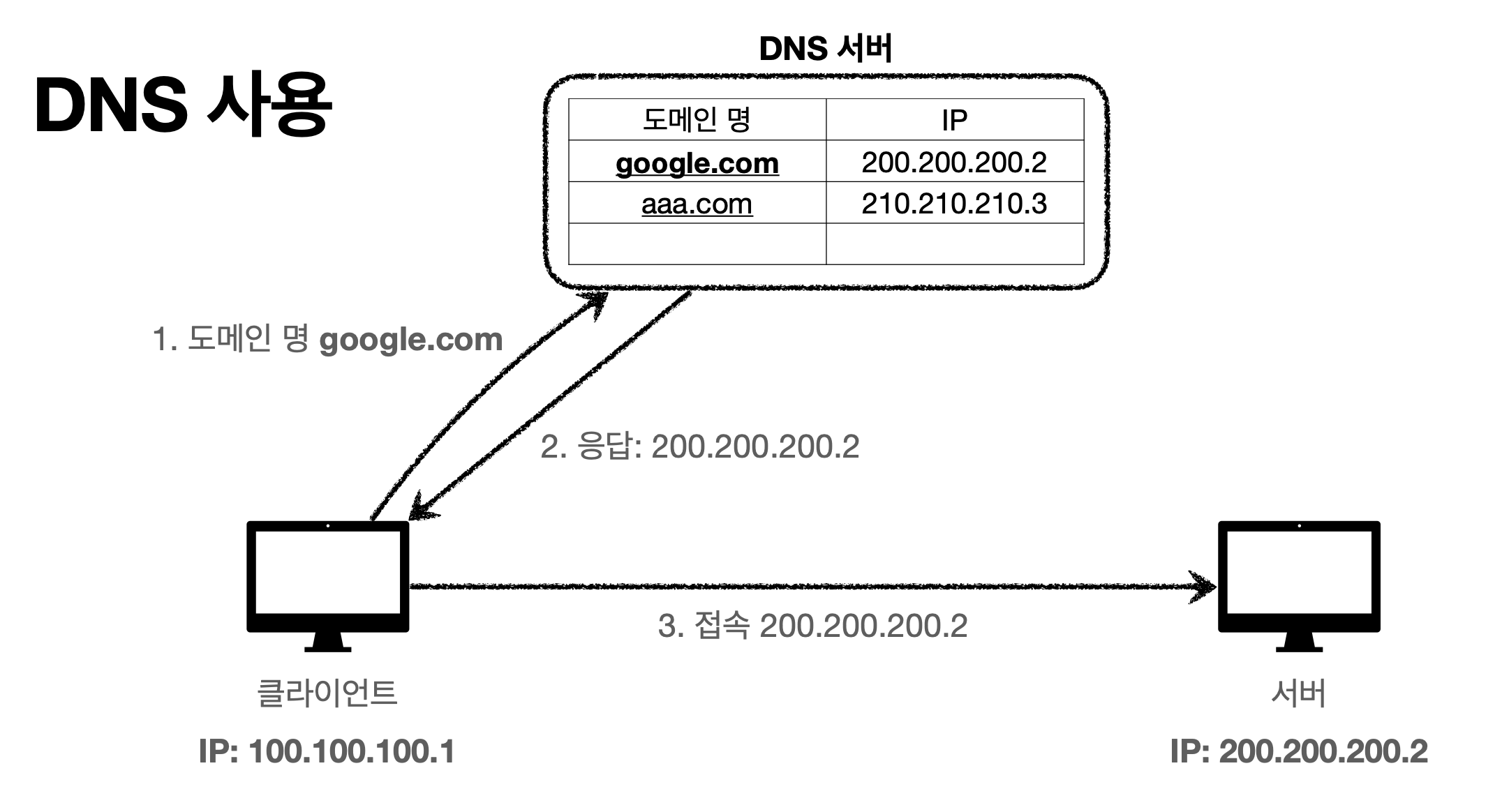 만약 google.com을 알고 IP 주소는 모르더라도 google.com 도메인을 DNS 서버로 요청하면 IP 주소를 응답해주고 그것을 통해 접근할 수 있습니다.