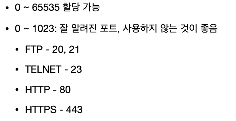 포트 번호는 각 애플리케이션이 네트워크 상에서 고유하게 식별되는 번호입니다. 같은 IP 내에서 프로세스를 구분하기 위해 사용됩니다. 이를 통해서 동일한 IP 주소를 사용하는 서버에서도 포트 번호를 통해 여러 애플리케이션을 구분할 수 있습니다.
