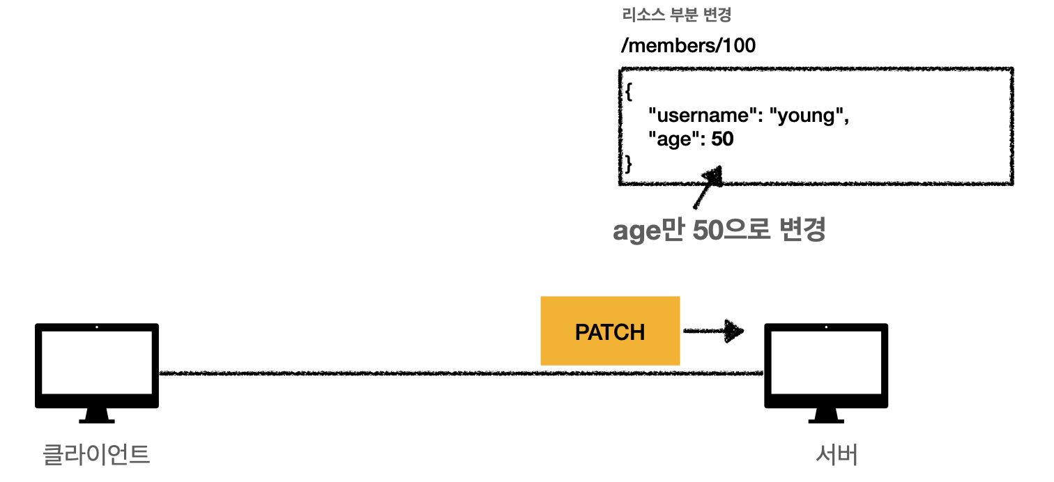 만약 리소스를 대체하는 것이 아닌 부분만 교체하기 위해서는 PATCH 라는 메서드를 사용합니다.