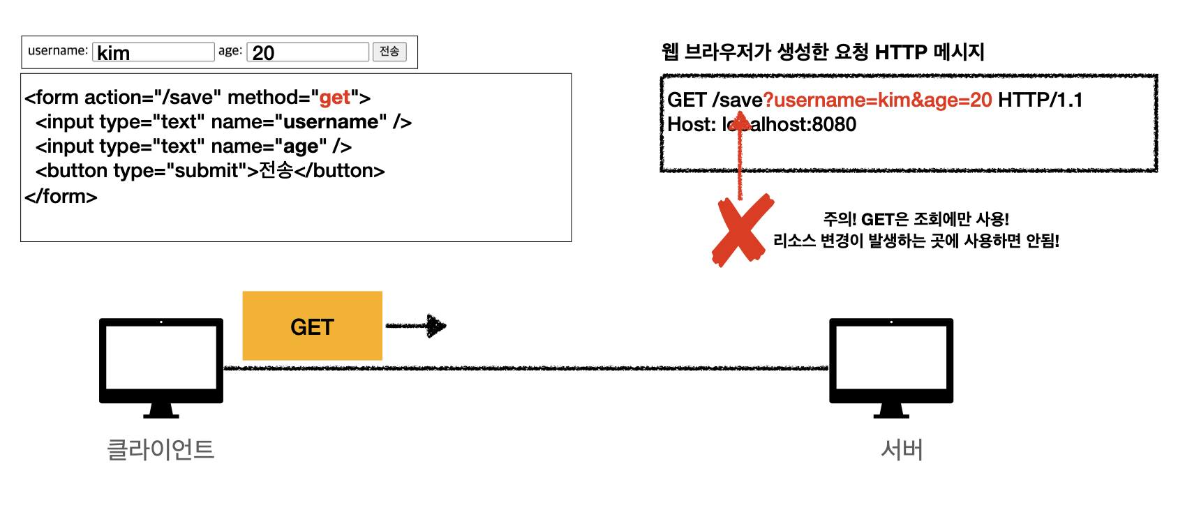 HTML FORM은 GET, POST만 지원합니다. AJAX 같은 기술을 사용해서 해결 가능하지만 여기서는 순수 HTML, HTML FORM 이라고 가정하겠습니다. GET, POST만 지원하므로 제약이 있습니다.