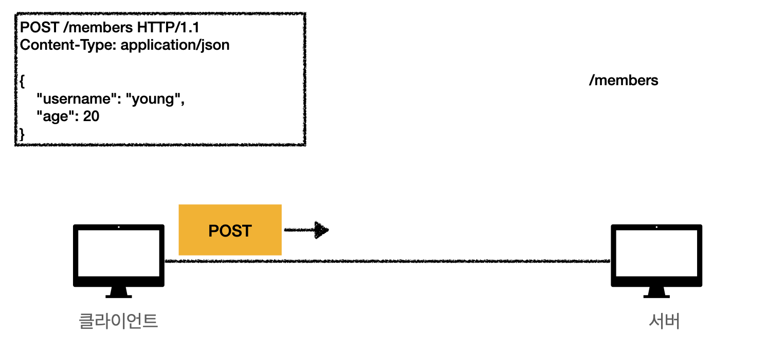 POST, PUT, PATCH일 때는 메시지 바디를 통해 데이터를 전송하고 GET 을 사용할 때는 쿼리 파라미터로 데이터를 전송합니다.