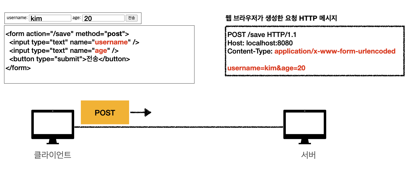 메서드가 post면 메시지 바디에다가 데이터 값을 넣습니다. Content - Type에 urlencoded는 url을 인코딩 상태로 전달하는 것입니다.