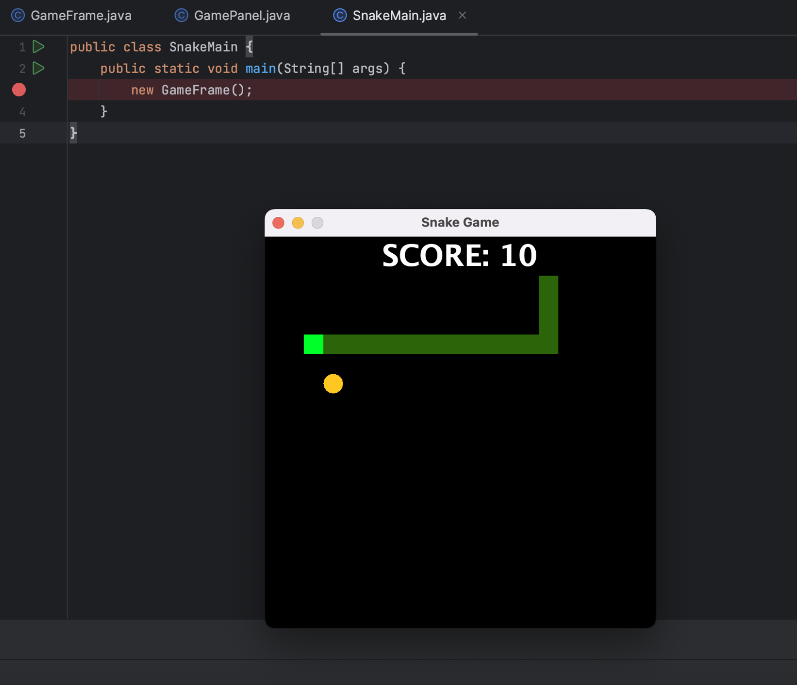 Snake game은 뱀을 조종하여 먹이를 먹어 길이를 늘리는 게임입니다.