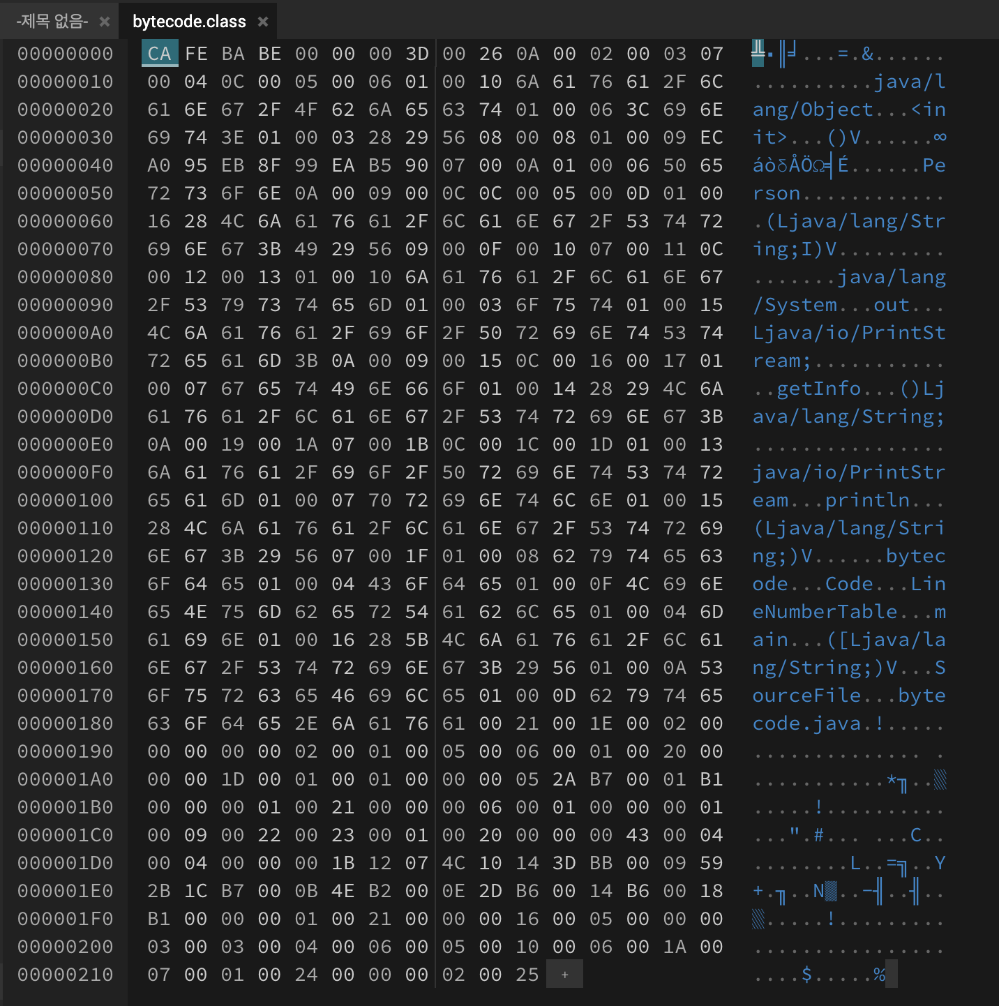 그럼 아래처럼 바이트 코드를 확인할 수 있다.